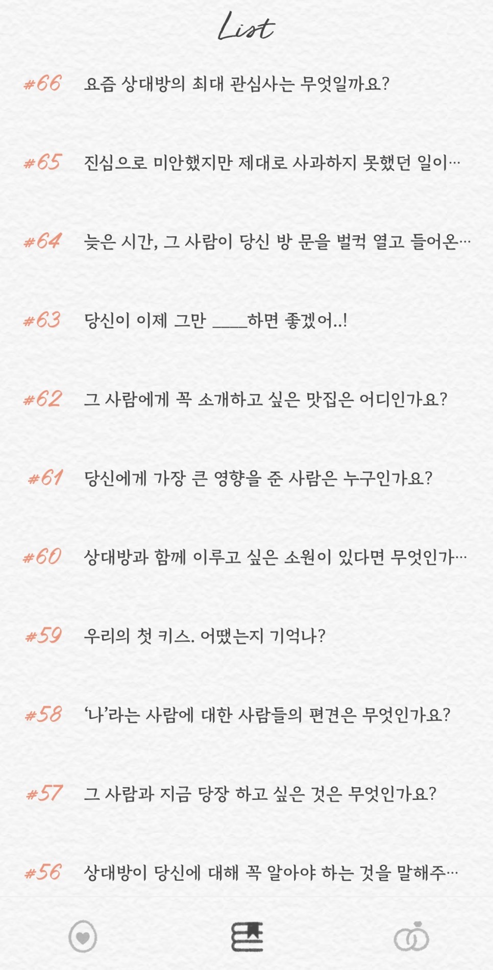 썸원 질문 45번 ~66번